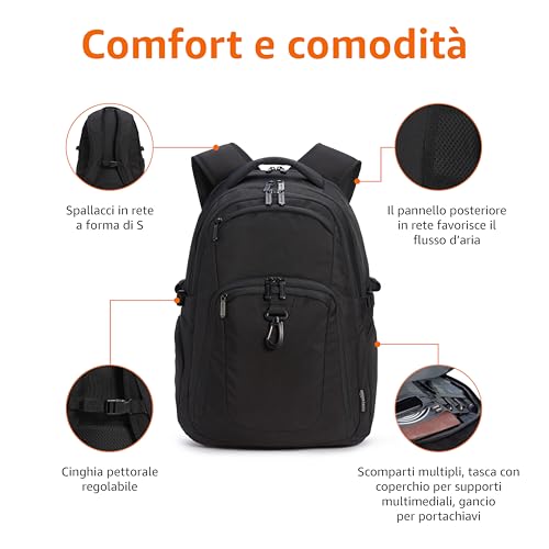 Amazon Basics Zaino per laptop, da viaggio, adatto per laptop da 17″, Nero