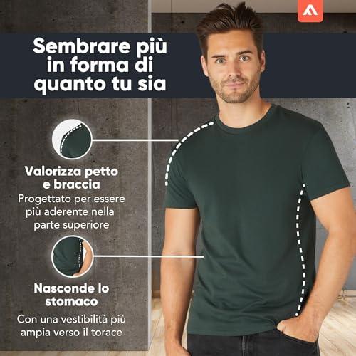 VESTIBILITÀ ADERENTE: si sei stanco delle magliette poco aderenti queste magliette da uomo mettono in risalto le braccia, le spalle e il petto distinguendoti dagli altri, mentre offrono una vestibilità più ampia intorno alla pancia per un look casual