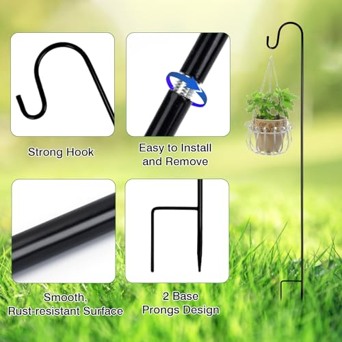 Materiale in ferro resistente: Il nostro ganci da pastore da giardino è realizzato in materiale di ferro di alta qualità e spessore, la superficie è levigata dal processo di verniciatura al forno, liscia e piatta per isolare l’aria, che può efficacemente prevenire la corrosione, nessuna ruggine e nessuno sbiadimento in uso a lungo termine.