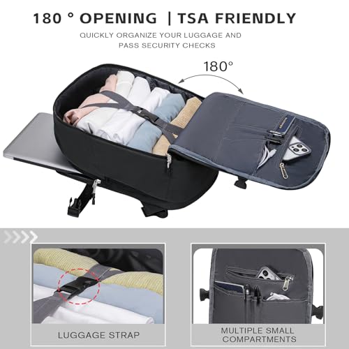 ZAINO DA VIAGGIO A SCOMPARTI: La parte posteriore dello zaino da viaggio è dotata di una piccola tasca antifurto nascosta per piccoli portafogli, passaporti, ecc. Tasche laterali sul lato dello zaino per riporre la tazza d\’acqua. Scomparto individuale per computer per tablet da 14\”, con spugna sul retro per una migliore protezione del computer. Lo zaino bagaglio a mano può essere aperto a 180° come una valigia, in modo da poter passare rapidamente I controlli di sicurezza.