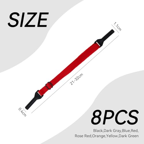 【Contenuto Del Prodotto】 Ottieni 8 Bande Di Vetro Sportive. Ogni Bicchiere Va Da 210 A 300 Mm E Ha Colori, Tra Cui Nero, Grigio Scuro, Blu Piccolo, Rosso, Rosso Rosa, Arancione, Verde Giallo E Scuro, Adatto Per Attaccare Gli Occhiali Di Tutte Le Dimensioni.