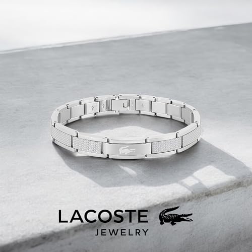 Lacoste Braccialetto a maglie da uomo Collezione STENCIL in Acciaio Inossidabile, Argento