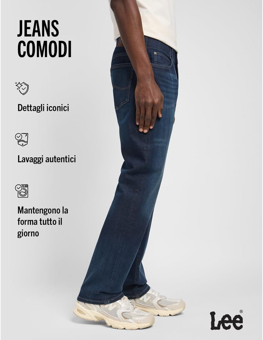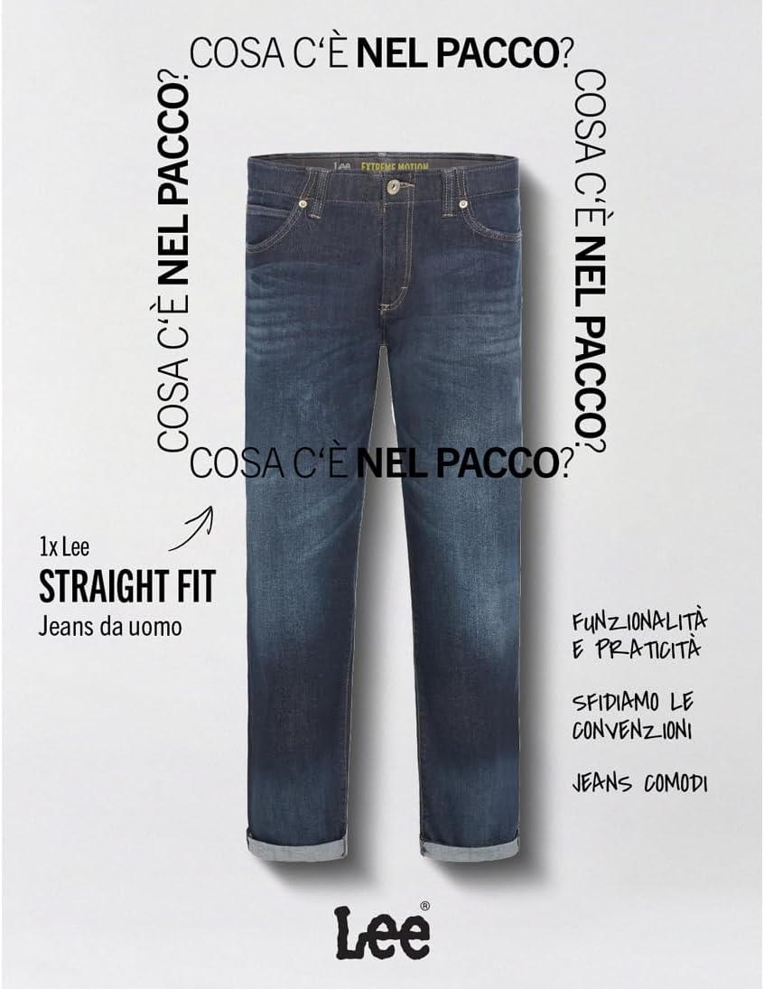 The Extreme Motion collection is designed to give you comfort, freedom of movement and unparalleled stretch. From straight cut to regular waist, it has all the features of a classic Lee jeans, but with a whole new level of comfort. Highly stretch 13 oz denim provides a comfortable fit. Made from 28% recycled polyester. These jeans have a medium blue finish with marked faded details on the thighs and hips. Featuring our classic five-pocket design, with Lee buttons and rivets and traditional stitching on the back pockets. ● REGULAR WAIST ● REGULAR FIT ● STRAIGHT LEG ● REGULAR THIGH ● REGULAR KNEE ● FULL LENGTH ● ZIP PATCH