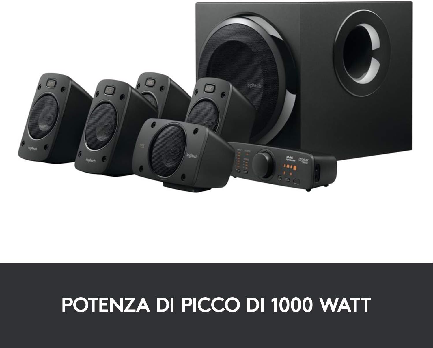 100 Watts Power: Logitech 5.1 Surround Sound Speakers, 1000 Watt Peak Power/500 Watt RMS, Rich Audio, Deep Bass; Feel Every Detail With Cinema Quality