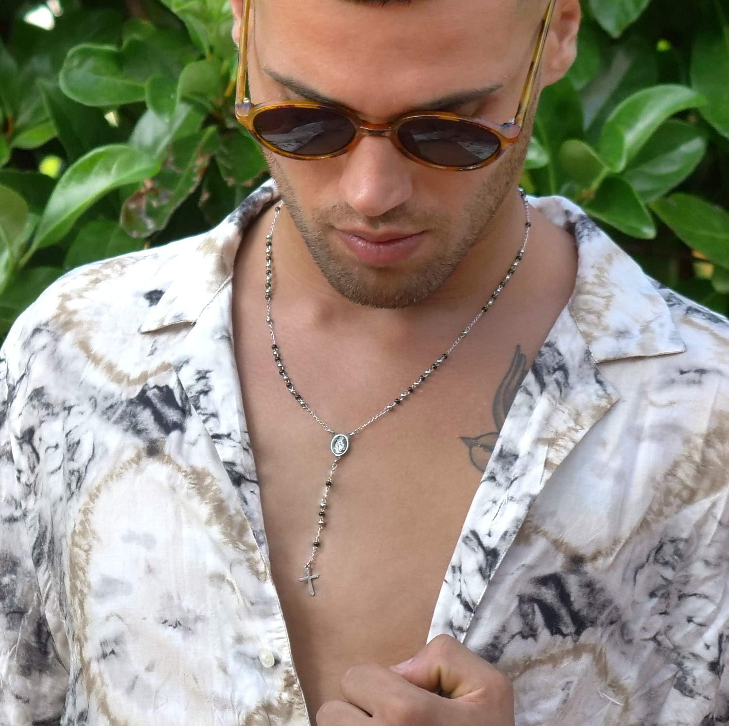 SAGA GIOIELLI This unisex rosary necklace, long model with black balls alternating with silver balls, all stainless steel. The necklace measures approx. 50 cm in length – extension to the cross 7 cm – 3 mm ball. This product is accompanied by the Saga Jewellery certificate and the gift box with our logo. All to add sparkle to your gifts.