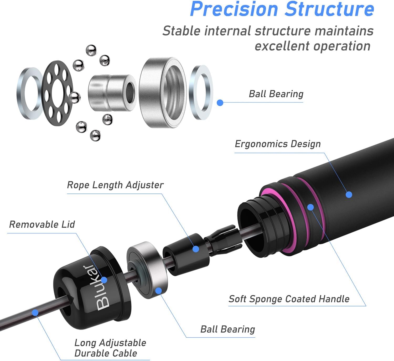 Sturdy Steel Skipping Rope: Blukar skipping rope is made of high quality steel wire and covered with a durable PVC outer material, even after a long period of exercise, it can be durable. Wear-resistant, stable and non-floating wire rope can ensure a long service life and prevent wear.