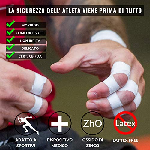 COMODO ED UNIVERSALE. Con la sua misura di 2,5cm x 10m, il cerotto taping sportivo si può utilizzare come nastro pallavolo dita, protezione crossfit, prevenzione infortuni, protezione articolazioni, nastro parastinchi. Oppure per utilizzo terapeutico come fasciatura rigida, tape caviglia, supporto caviglia, bendaggi fisioterapia, sostegno rotula. Usato anche nei luoghi di lavoro, come protezione pelle, cerotti medicazione, protezione articolazioni su lavori duri, protezione vesciche scarponi