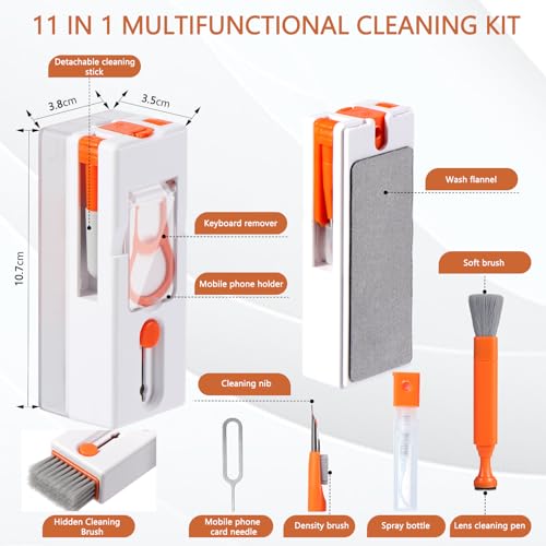 Kit di Pulizia 11 in 1: Kit di pulizia multifunzionale 11 in 1 con 11 diversi strumenti per pulire una vasta gamma di accessori elettronici per le diverse esigenze. Design all-in-one, leggero e portatile